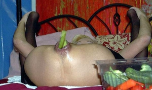 girl has a salad in her pussy